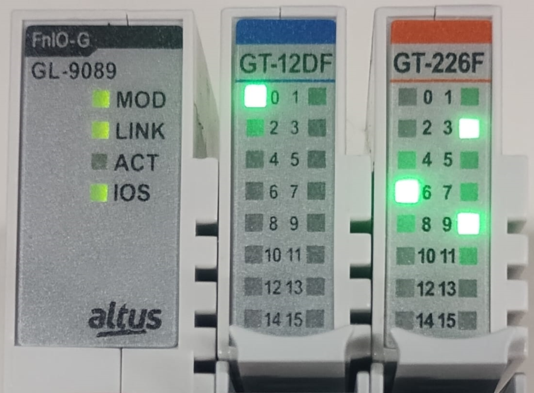 Obs.: O LED IOS aceso verde no módulo GL-9089 indica que os módulos de expansão estão em operação normal.