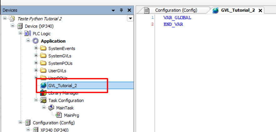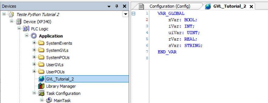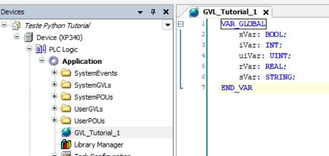 Abrindo o arquivo, vemos as nossas variáveis declaradas na GVL.