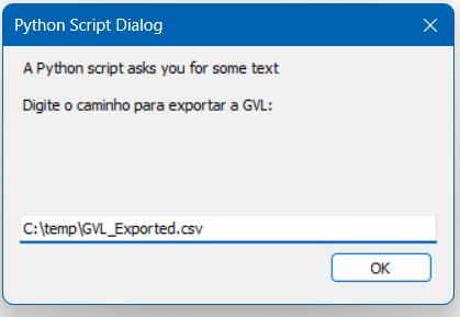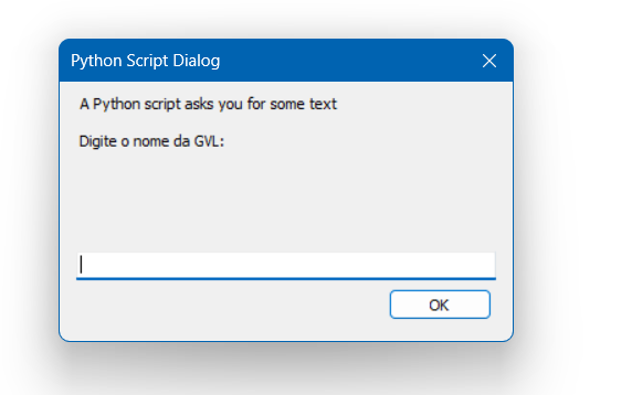 Após abrir o arquivo de script, uma tela de dialog será aberta solicitando que você informe o nome da GVL que deseja exportar.