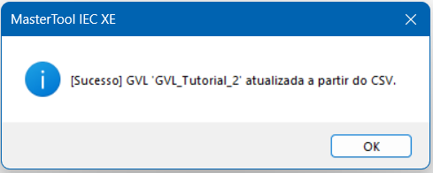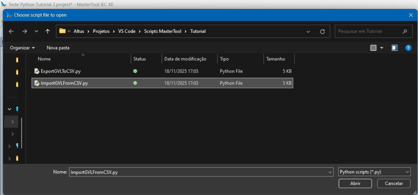 O script ImportGVLFromCSV.py serve para importar as variáveis de uma GVL exportada pelo script ExportGVLToCSV.py mostrado anteriormente.