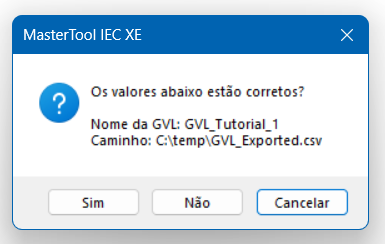 Apertando em Sim, se a GVL for exportada com sucesso, você verá um aviso de sucesso!
