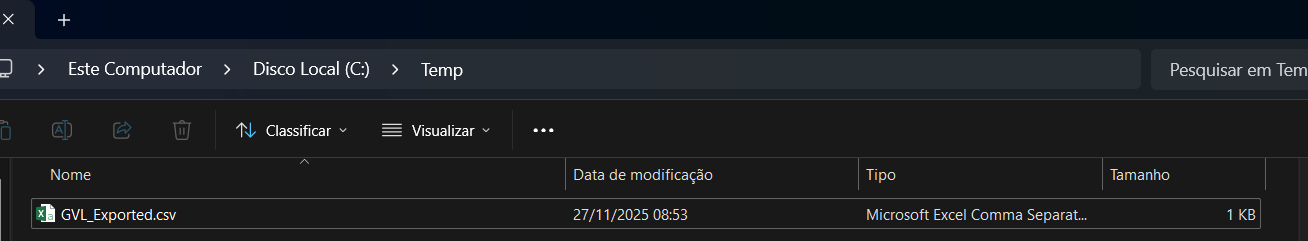 Após exportar a GVL, podemos observar na pasta do caminho que o arquivo foi gerado.