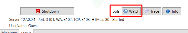 Para alterar e visualizar os valores no BluePlant, iremos utilizar a ferramenta Watch.