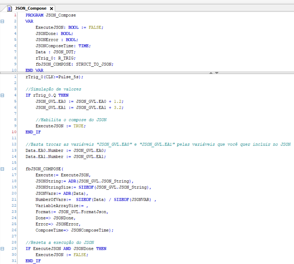Para isso, estaremos utilizando a biblioteca PRO-JSON, desenvolvida pela comunidade da CODESYS. Caso tenha interesse, segue o link da documentação: https://forge.codesys.com/lib/pro-json/home/Home/.