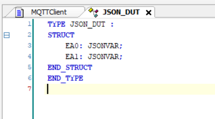 JSON_DUT é uma STRUCT (DUT - tipo de unidade de dado). Basicamente, você está criando um tipo de variável, assim como existem tipos BOOL, REAL, INT, estamos criando o tipo JSON_DUT.
