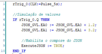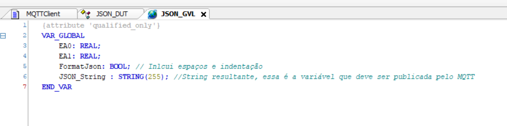 Na JSON_GVL, estamos declarando as variáveis a serem utilizadas na comunicação e na formatação de dados.