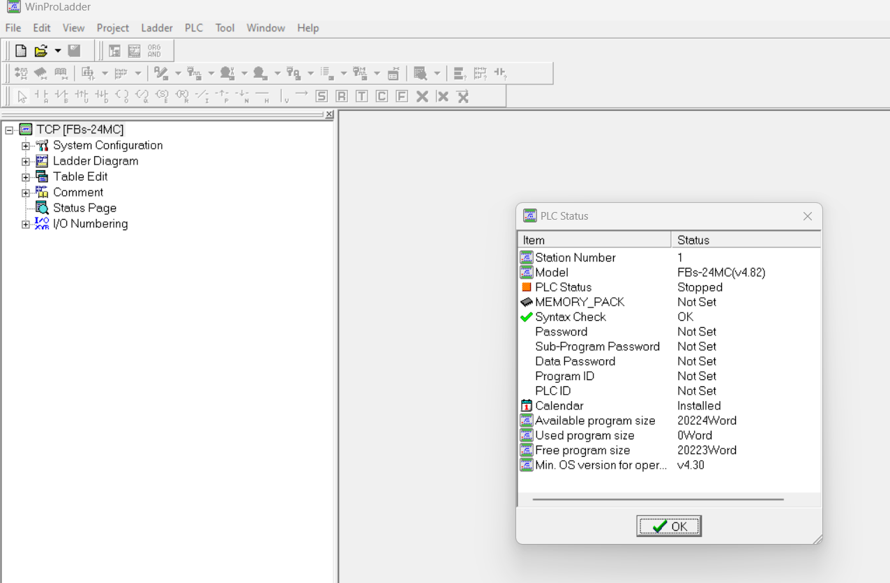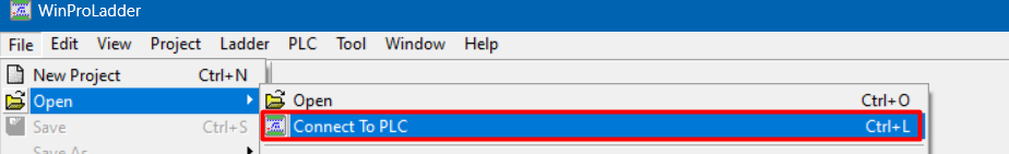 Abra o software de programação do FBs WinProLadder. Neste tutorial, iremos em Open -> Connect To PLC para fazer um Upload do projeto atual do CLP.