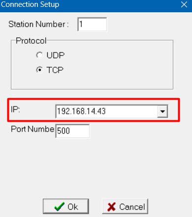 Nesta tela, iremos alterar o IP para o IP da IHM - 192.168.14.43.