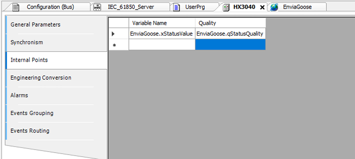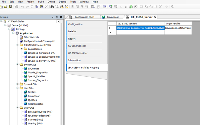 1. Na guia IEC 61850 Variables Mapping devemos vincular a variável criada do IEC61850_Generated_GVL a variável interna do projeto.
