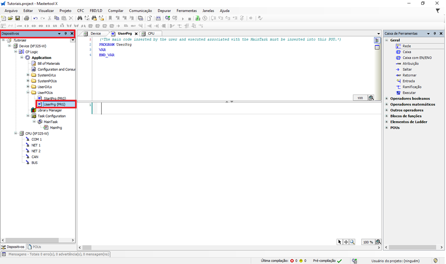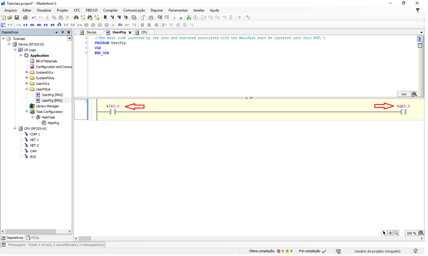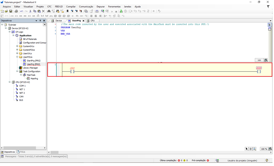 Com o projeto já criado conforme o tutorial Nexto XF – Criando um Projeto, vamos agora acessar a parte lógica do programa, que ficará em execução cíclica (looping) no CLP.