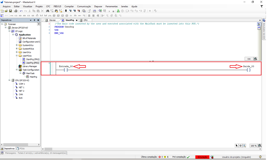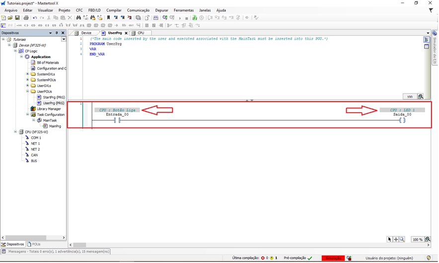 É importante lembrar que o MasterTool IEC XE não é case sensitive, ou seja, o software não diferencia letras maiúsculas de minúsculas. Ainda assim, recomenda-se manter um padrão de escrita para facilitar a leitura do programa.