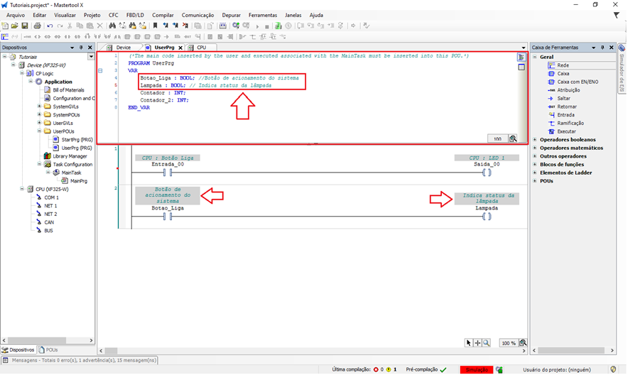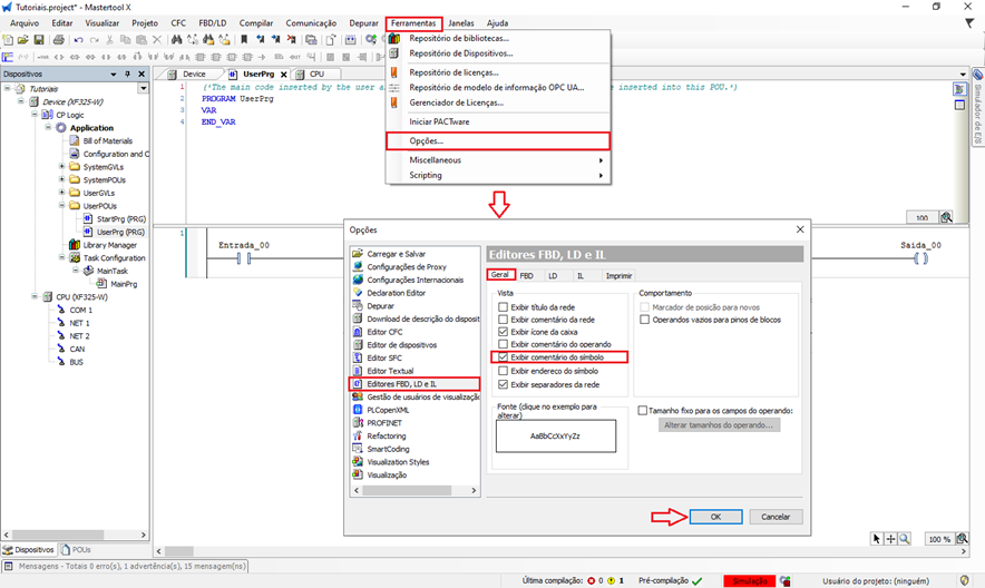 Para habilitar a visualização dos comentários das variáveis na lógica Ladder, siga os passos abaixo: