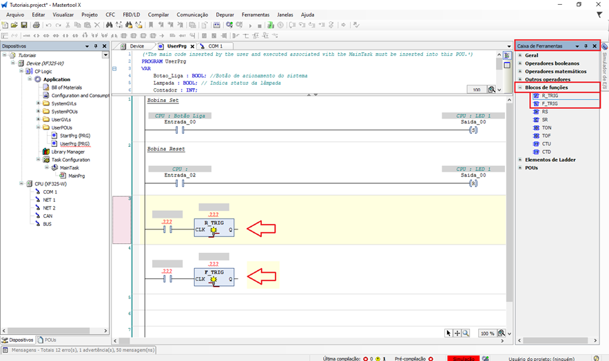 O objetivo deste tutorial é explicar como utilizar os blocos de funções R_Trig e F_Trig em um projeto do MasterTool X.