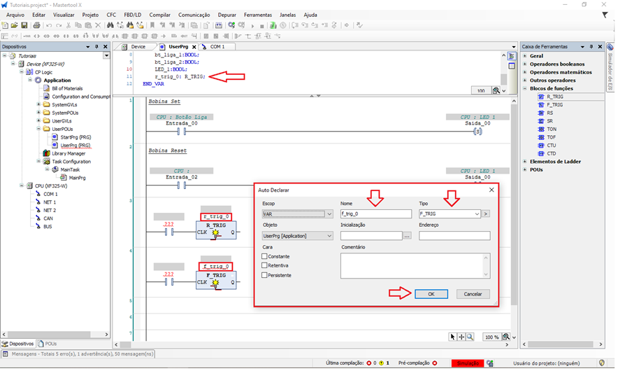 Por se tratar de um bloco de função, o R_TRIG e o F_TRIG precisam obrigatoriamente de uma variável para referenciar sua instância.