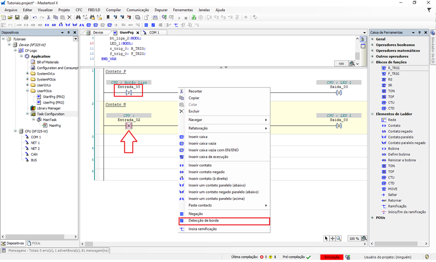 O objetivo deste tutorial é explicar como utilizar os contatos P e N em um projeto do MasterTool X.