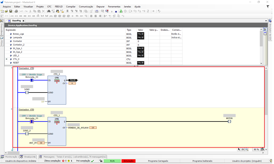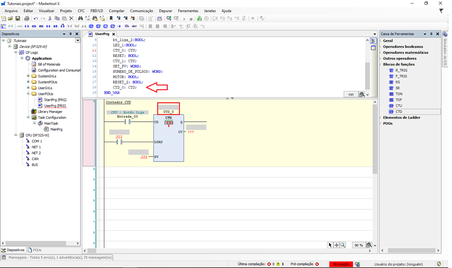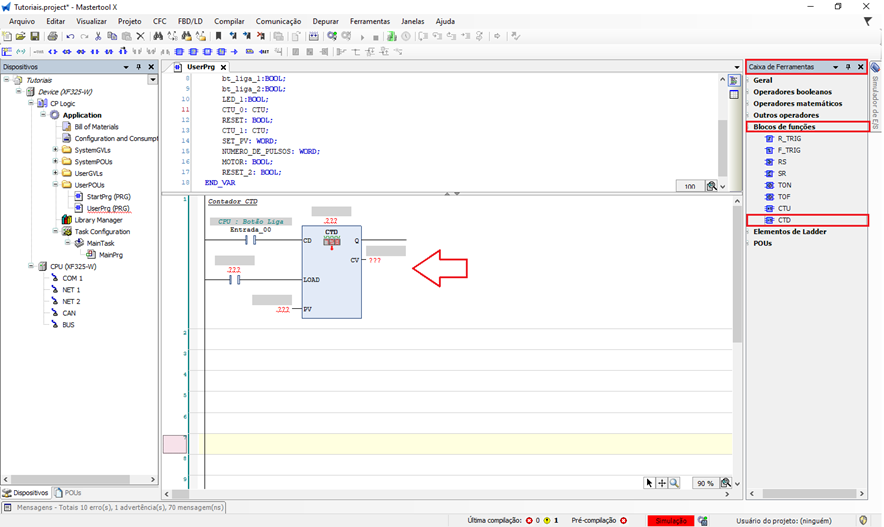 O objetivo deste tutorial é explicar como utilizar o bloco de função CTD que é um contador decremental em um projeto do MasterTool X.