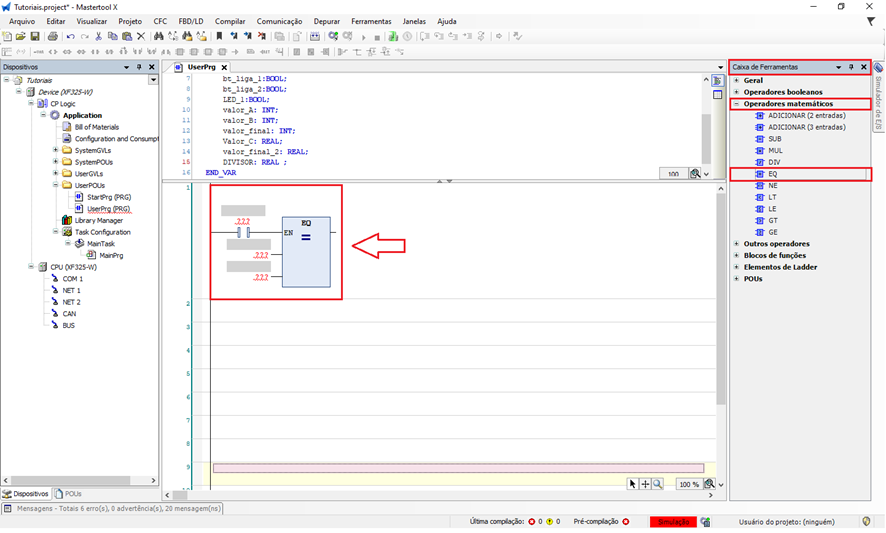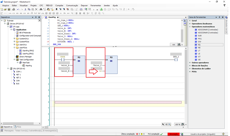 O objetivo deste tutorial é explicar como utilizar o bloco de comparação com função de igualdade em um projeto do MasterTool X.