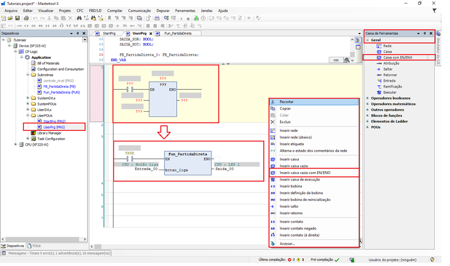 - Abra o UserPrg ou outra POU.