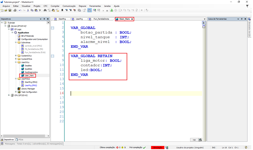 O objetivo deste tutorial é explicar como criar uma lista de variáveis retentivas em um projeto do MasterTool X.