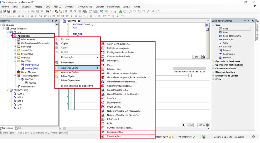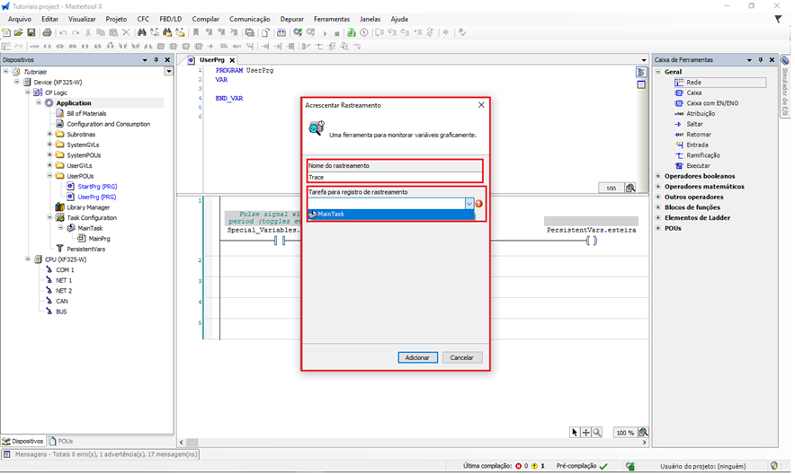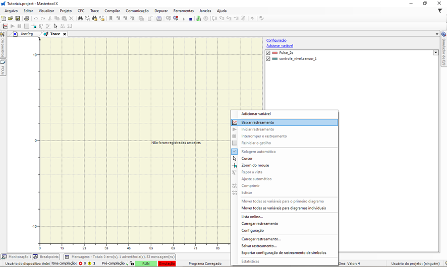 O objetivo deste tutorial é explicar como adicionar e parametrizar o Trace em um projeto do MasterTool X.