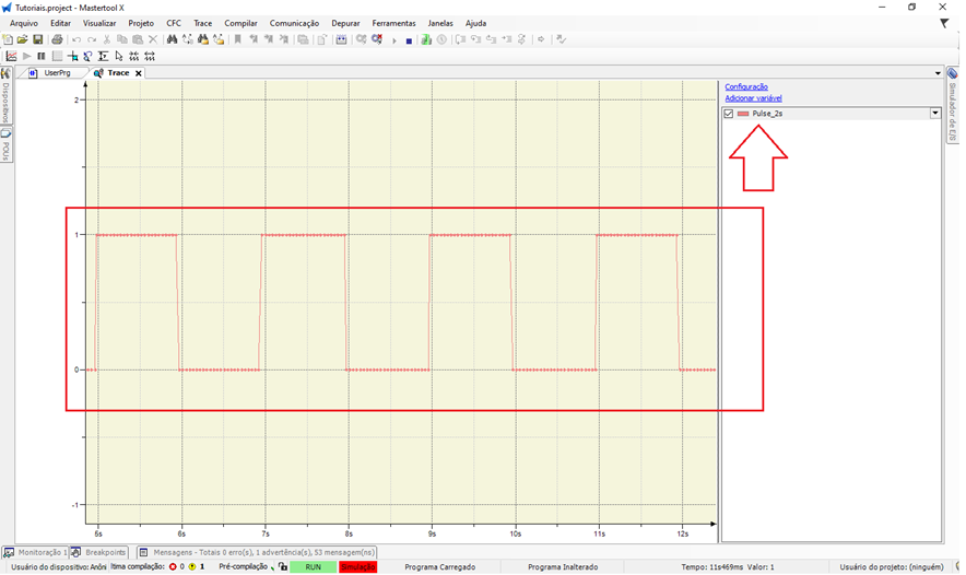 O Trace é uma ferramenta extremamente útil para diagnóstico e análise de comportamento de variáveis, permitindo visualizar com precisão a dinâmica da lógica ao longo do tempo, algo que não é possível observar apenas olhando o estado instantâneo das variáveis na lógica Ladder.