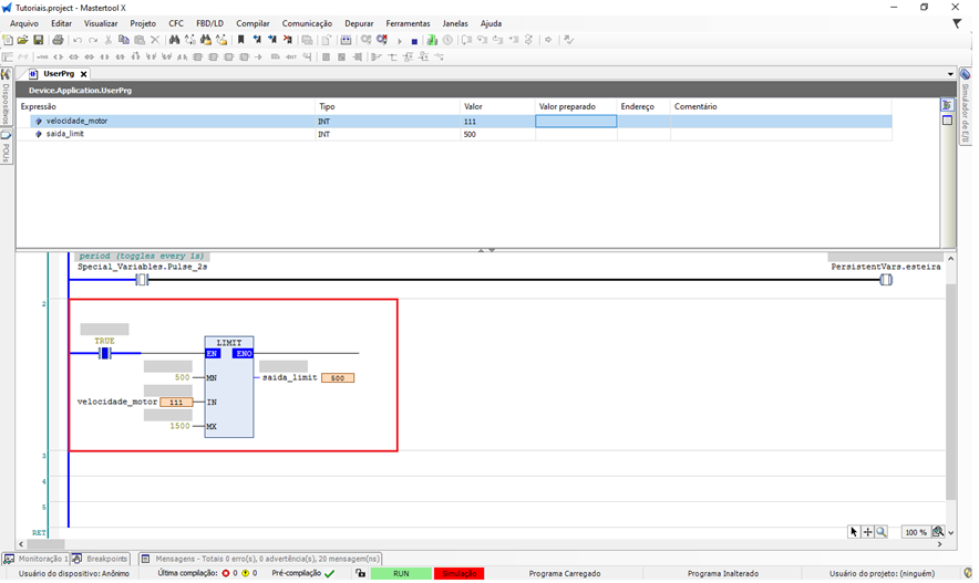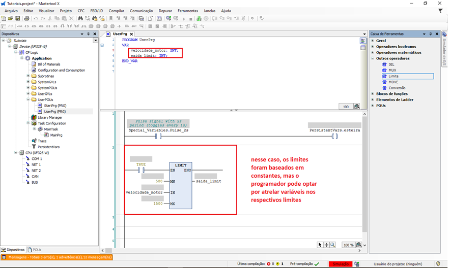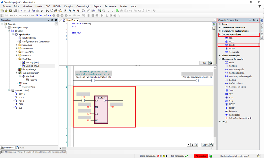 O objetivo deste tutorial é explicar como inserir e utilizar o operador limit em um projeto do MasterTool X.