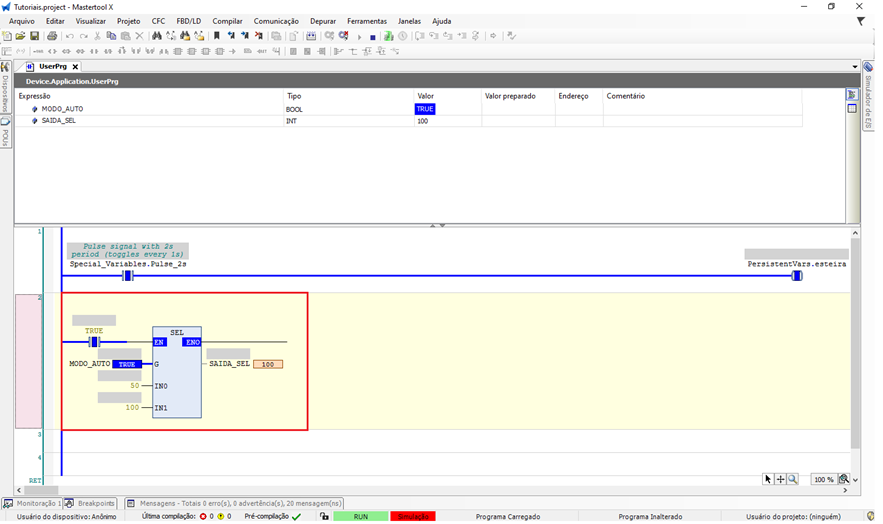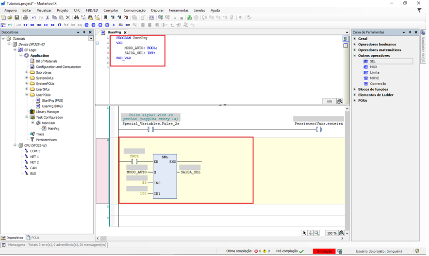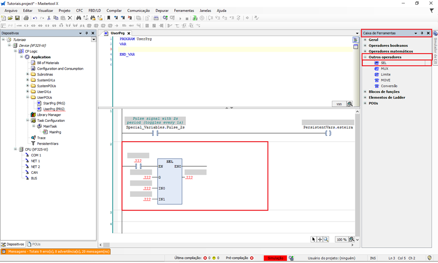 O objetivo deste tutorial é explicar como inserir e utilizar o operador SEL em um projeto do MasterTool X.