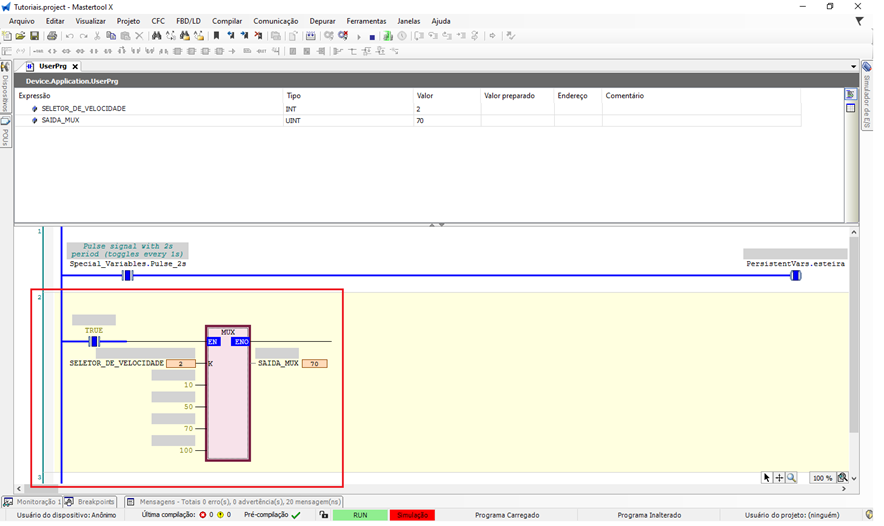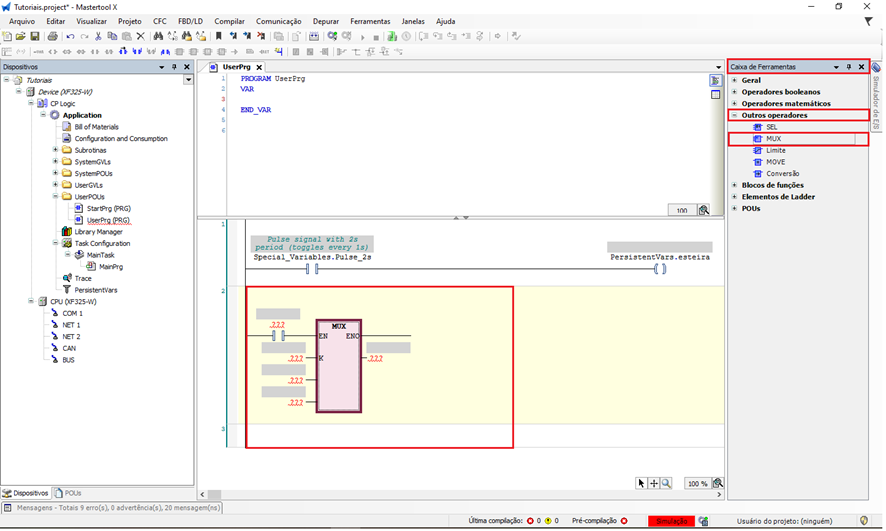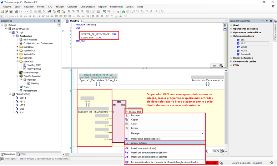 O objetivo deste tutorial é explicar como inserir e utilizar o operador MUX em um projeto do MasterTool X.