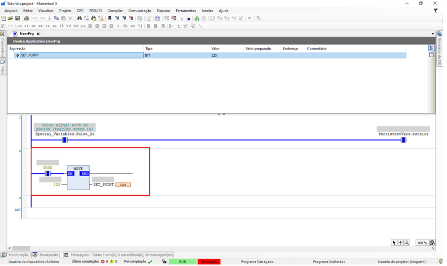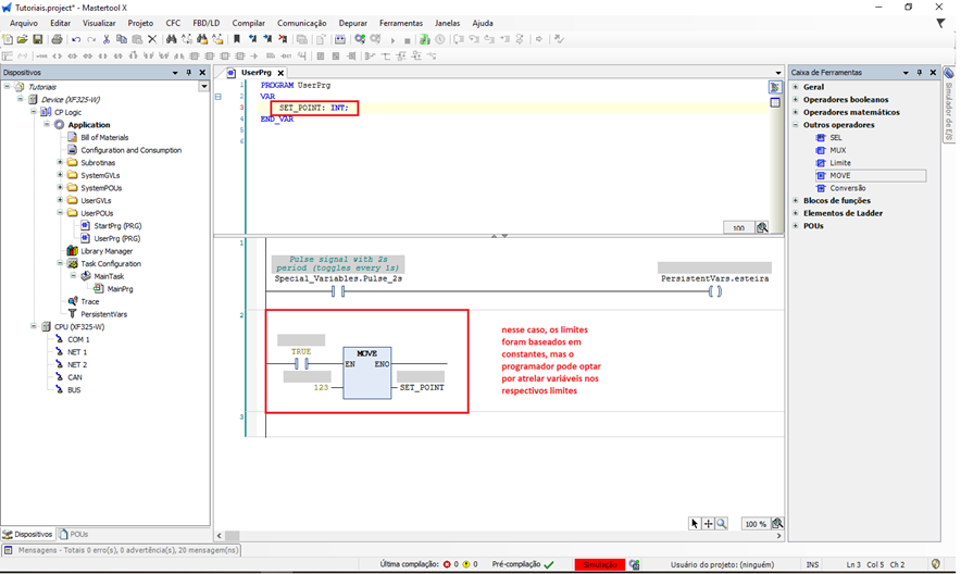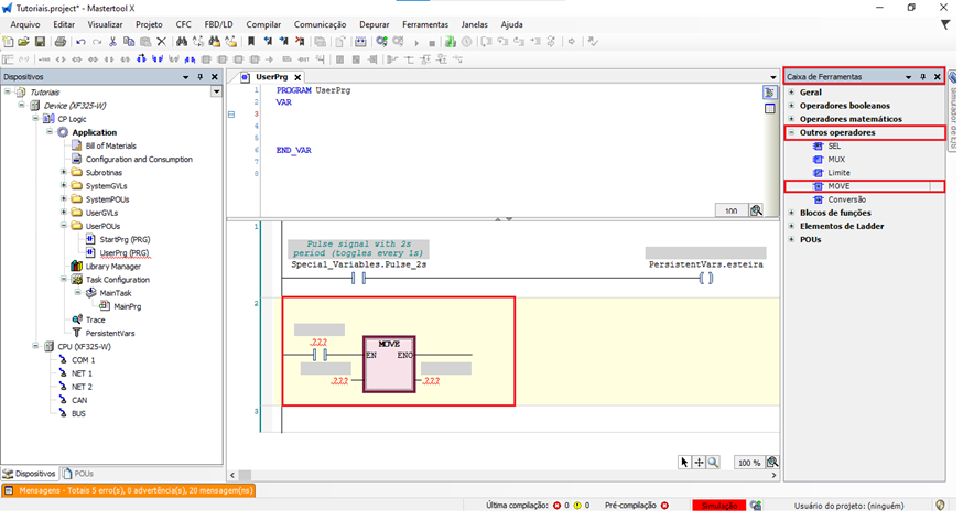 O objetivo deste tutorial é explicar como inserir e utilizar o operador MOVE em um projeto do MasterTool X.