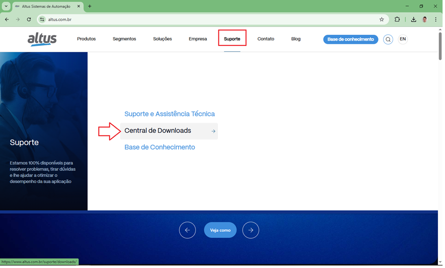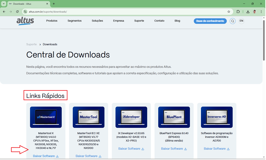 Após isso, o usuário será redirecionado para a área de downloads da Altus.