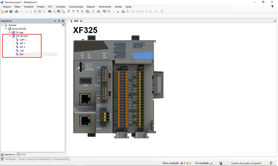 A aba Configuration dentro do MasterTool IEC XE é responsável por todas as configurações de hardware do controlador, permitindo que o usuário ajuste parâmetros que impactam diretamente no funcionamento físico do CLP.