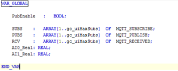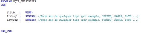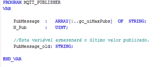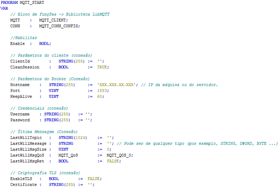 Na PRG MQTT_START, vamos declarar as seguintes variáveis: