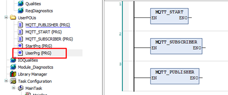 Também, disponível nos anexos deste tutorial, há um projeto com o nome Function Block MQTT. Neste projeto é realizado assinaturas e publicações de tópicos MQTT por meio de Function Block, facilitando a visualização do usuário.