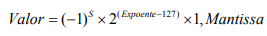 O valor decimal de um ponto flutuante 32 bits é obtido pela seguinte expressão: