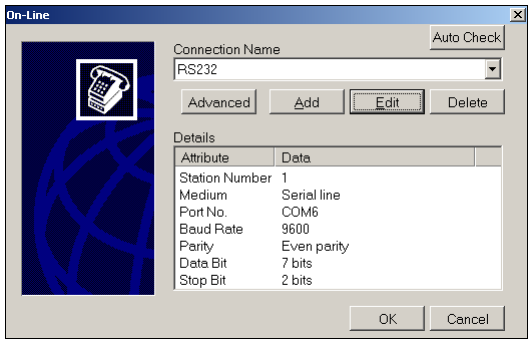 • Botão Edit: Permite a edição dos parâmetros de comunicação.