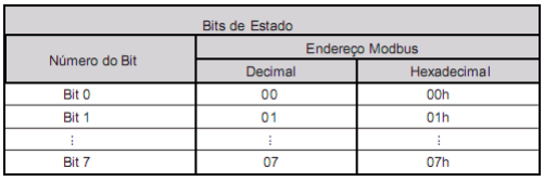 - Através da rede MODBUS, é possível acessar os Bits de Estado. Podem ser acessados através dos endereços: